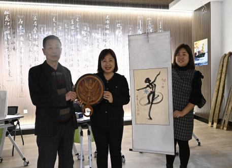 智慧冰雪文旅学院王辉院长汇报了自2009年来我校非遗文化进校园的成果,结合智慧冰雪旅游专业群的发展规划,表达了未来将从数字非遗,智慧文旅的角度发掘、传承吉林冰雪非遗文化的愿景。