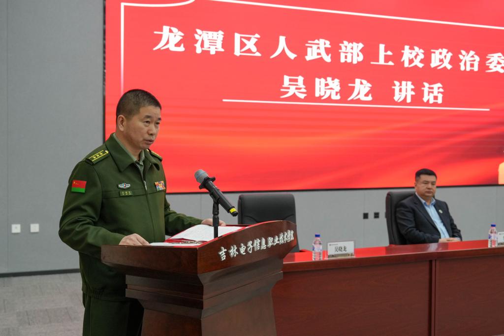 3月17日,我校在新山校区图书馆一楼会议室举行2025年春季应征入伍学生欢送仪式,学校党委书记何晓杰、校长曾繁明、党委副书记石洪发、吉林市龙潭区人武部上校部长娄磊、人武部上校政治委员吴晓龙出席仪式,新兵家长、学工人员及入伍新兵参加仪式,学校党委武装部部长孙凯主持会议。