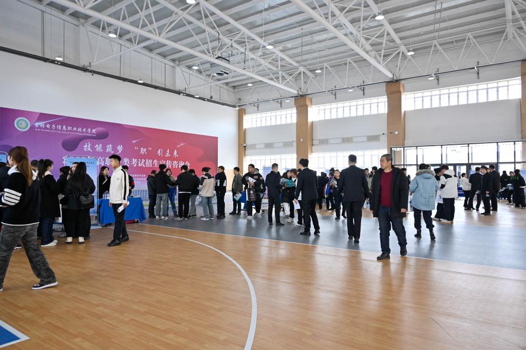 3月29日,由吉林省教育考试院主办、我校承办的“技能筑梦‘职’引未来—吉林省2025年高职分类考试招生宣传咨询会(吉林场)”在我校新山校区体育馆举行。 本次招生宣传咨询会汇聚了省内21所高职院校,吸引了近两千名考生及家长参观咨询,通过权威政策解读、优势特色专业展示及近几年录取情况介绍等形式,为学生志愿报考提供精准服务对接,助力考生科学规划升学之路。 咨询会现场,各高职院校展位前人头攒动,招生工作人员耐心解答考生关于专业特色、就业前景、升学途径等问题。我校重点围绕志愿填报、职业技能考试、专业就业方向、学费收费标准、学习生活环境等考生关切问题展开讲解。 本次招生宣传咨询会,为学校和考生、家长搭建了广泛的、面对面交流的平台,同时也促进了省内高校之间的交流与合作。 (供稿单位:招生工作办公室 初审:田春德 复审:孟令飞 终审:汤海涛)